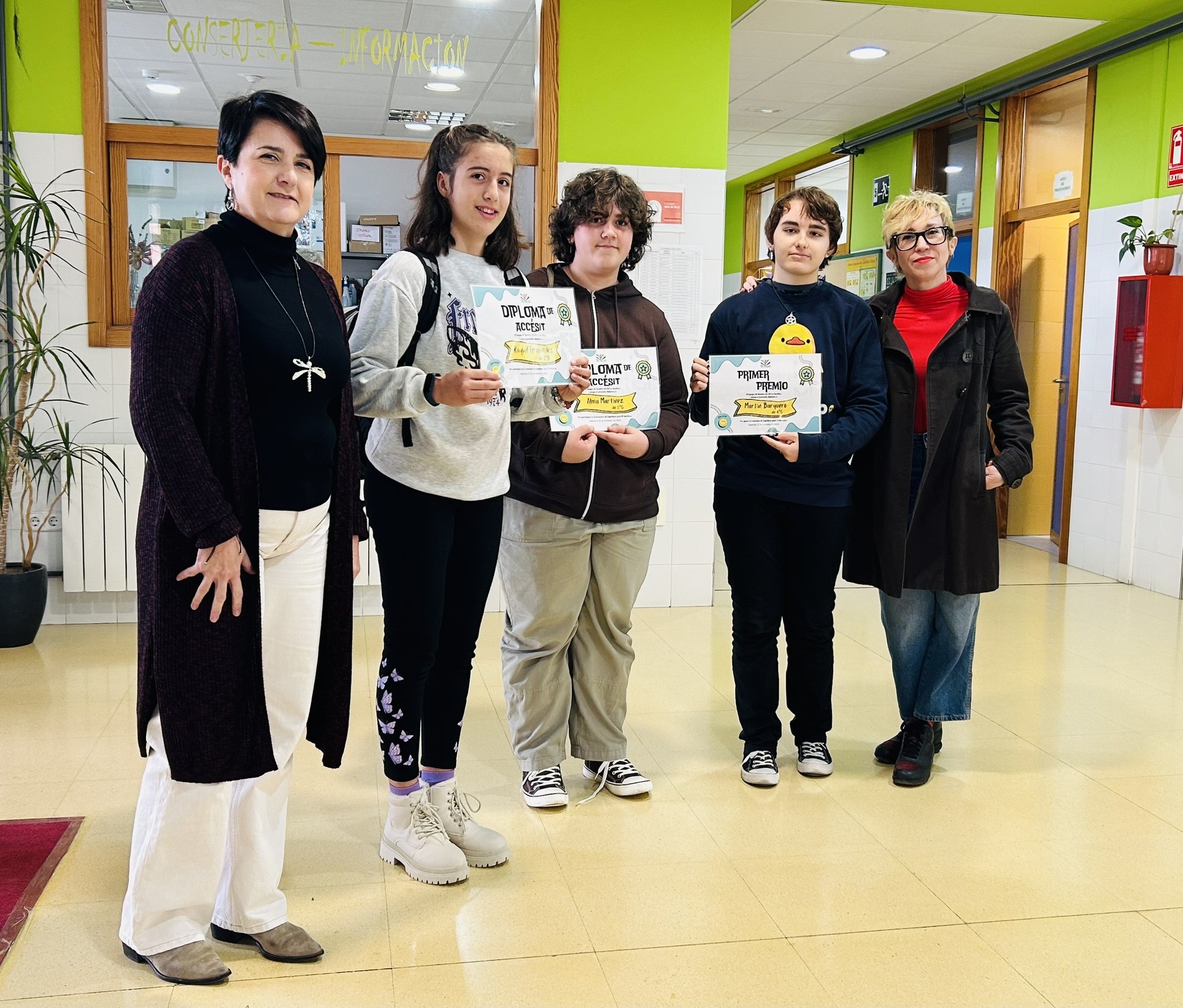Aquí os dejamos a los premiados junto con la directora del IES La Basílica, María Ángeles García Clemares, y la profesora encargada de esta publicación, Susana Navarro, del Departamento de Lengua castellana y Literatura.
